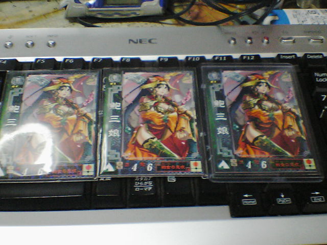 昨日はずっとサブで魏4(SR張遼、SR夏候惇、SRカク、R徐晃)デッキと、LE周ユを引いたので朱治業炎デッキをやってました。 Rゴツ突骨は台の上に半開封で放置されていたのでありがたく頂いたのですが・・・こんな素敵カード放置するんじゃねえ!! 後、とうとう鮑も3枚目に突入しました。 Rレート1位のカードだけにうれしい反面、もう要らないよと言う気持ちで一杯です。 知り合いが何故かUFOキャッチャーでこれを取ってました。 味は・・・ウメトラマン? 三国志大戦2全国大会 覇業への道~若獅子の覚醒~開催決定 3回目の全国大会が今年も開催されるみたいですね。 広島の自分のホームだけ、何故か店舗予選が開催未定なのですがこれは孔明の罠なのでしょうか? 今回は参加してみようかと思うのですが前回、前々回と同様現在流行っているデッキがかなり占めて来ると思われるのでそれの対策をしっかりとしないときつそうですね。 |