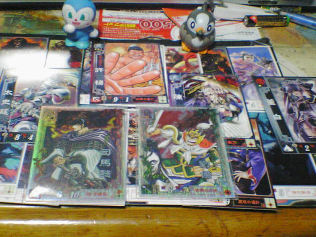 そして今日はこれに応募するためカード入れの中を整理していると、ダブったカードが出てくるわ出てくるわ ↓の様な枚数になりました。 6勢力の総数なので1勢力ごとに1口あるか無いかといった感じなのですが、これに1枚あたり200円くらい注ぎ込んでるのかと思うと少し泣けてきます。 これは無駄遣いだという意見が多数だと思うけれど、見ていない人のサイレントマジョリティを考慮に入れてこれは無駄遣いではないと言う事に決定しました。 / ̄\ |/ ̄ ̄ ̄ ̄\ (ヽノ// //V\\ |/) (((i )// (゜) (゜)| |( i))) 普通にダメー★ /∠彡\| ( _●_)||_ゝ \ ( ___、 |∪| ,__ ) | ヽノ /´ | / この1週間の間は1.5コスト大会に参加して1500位くらいと何の面白みも無い結果に終わり、最近鼓舞降雨大水計に嵌ってきております。 この鼓舞降雨大水計を使う前には悪鬼飛翔毒遮断デッキで徳12から10へと転落し、これには少し危機感を感じて手っ取り早い強カードを使おうとUCジュンユウへととうとう手を伸ばしてしまいました。 結果から言えば大成功。 今現在は陽2陰3の徳13で今日当たり徳14を目指してみようかなと思っています。 鼓舞降雨大水計も色々とカードを変えてやりましたが、落ち着いてやれたのは〔Rシン皇后・R干吉・UCジュンユウ・楽進・UC木鹿大王・C張任の総武力24/31〕のデッキですね。 象が弱体化したとは言えやはり硬さには定評があるので防戦では強く、攻城でも武力8の耐久力を生かして何発も攻城を叩き込める場面も多々ありました。 今日はデッキを魏蜀に変えて〔SRカクorRホウトウ・R黄忠・R曹仁・Rシン皇后・UCジュンユウ・C趙累〕の大水計と愉快な仲間達で挑んで見ます。 このブログは / ̄\ |/ ̄ ̄ ̄ ̄\ (ヽノ// //V\\ |/) (((i )// (゜) (゜)| |( i))) ことわざ帝国ジョポニズム★ /∠彡\| ( _●_)||_ゝ \ ( ___、 |∪| ,__ ) | ヽノ /´ | / の提供でお送り致しました。 |